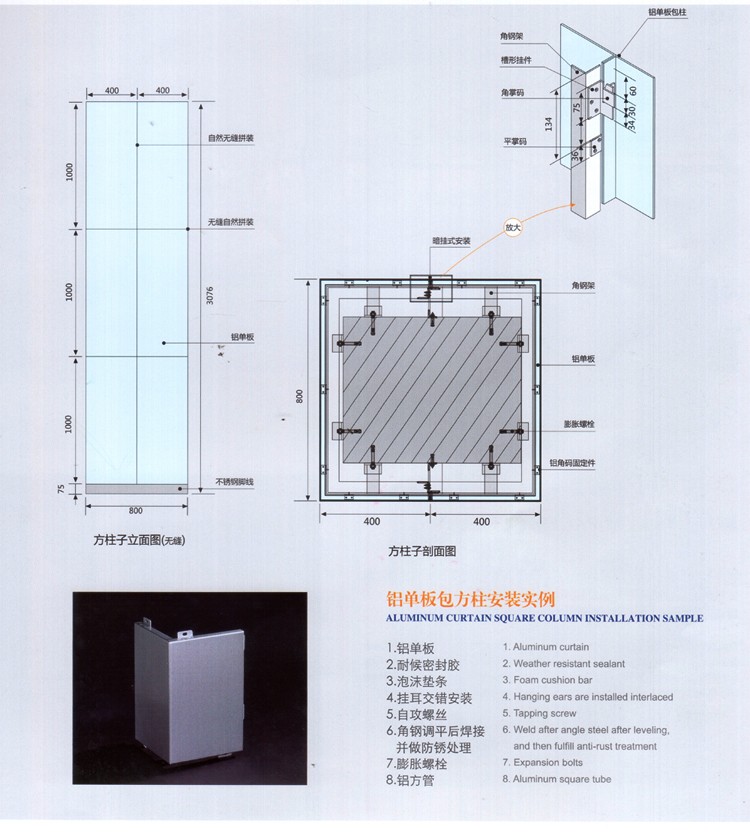 方形無縫包柱鋁單板的用途應(yīng)用: